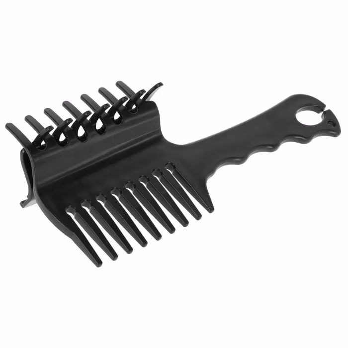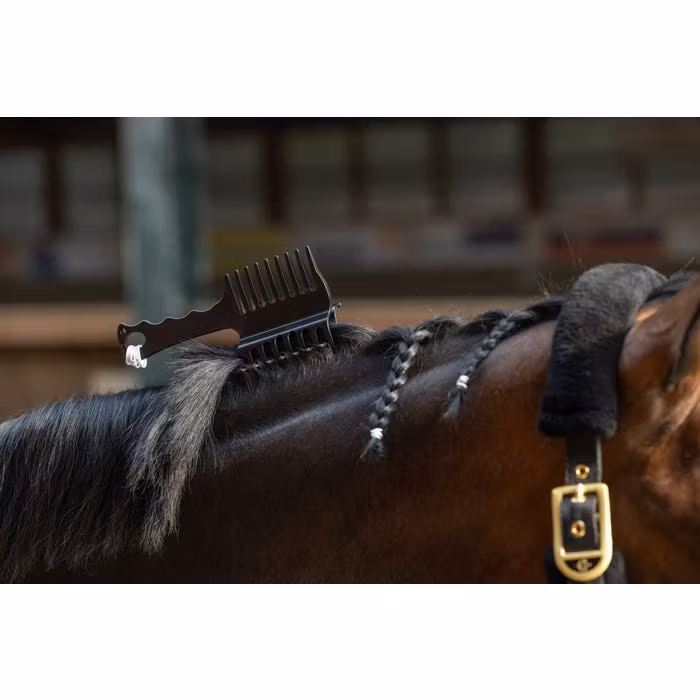 - Praktisk 3-i-1-kam med klämma och manbandshållare för enkel, jämn flätning av hästens man