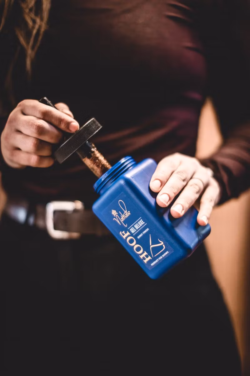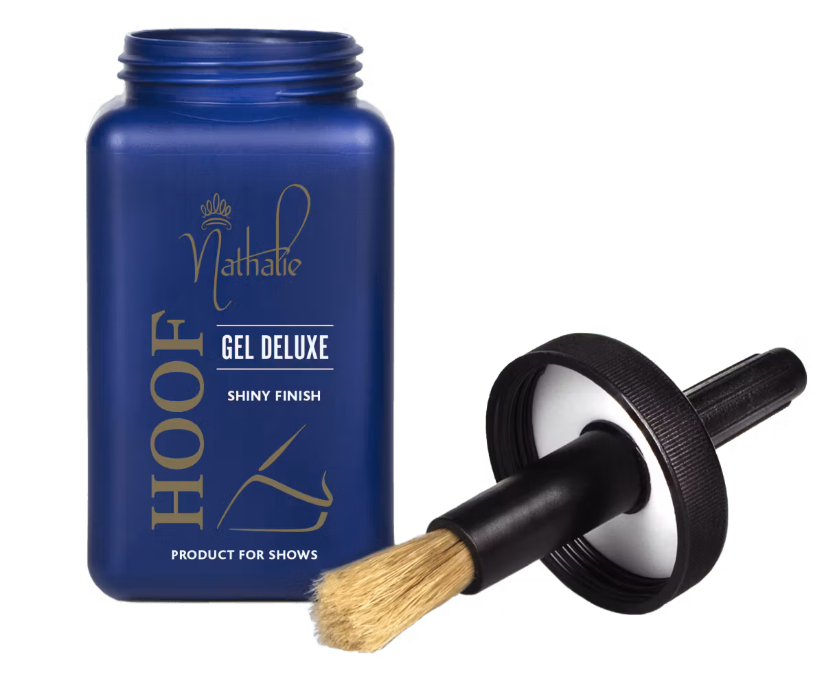 Nathalie Hoof Gel Deluxe som ger en glans med glitter på hovarna utan att kompromissa med hovvården.