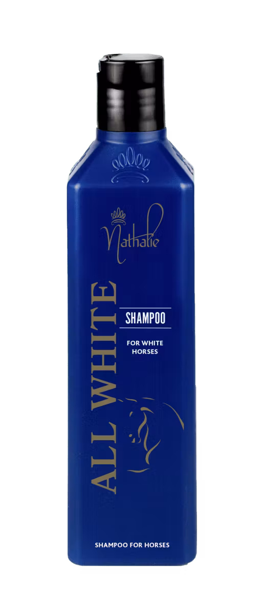Nathalie All White Shampoo är speciellt framtaget till tvätt av skimlar och vita hästar.