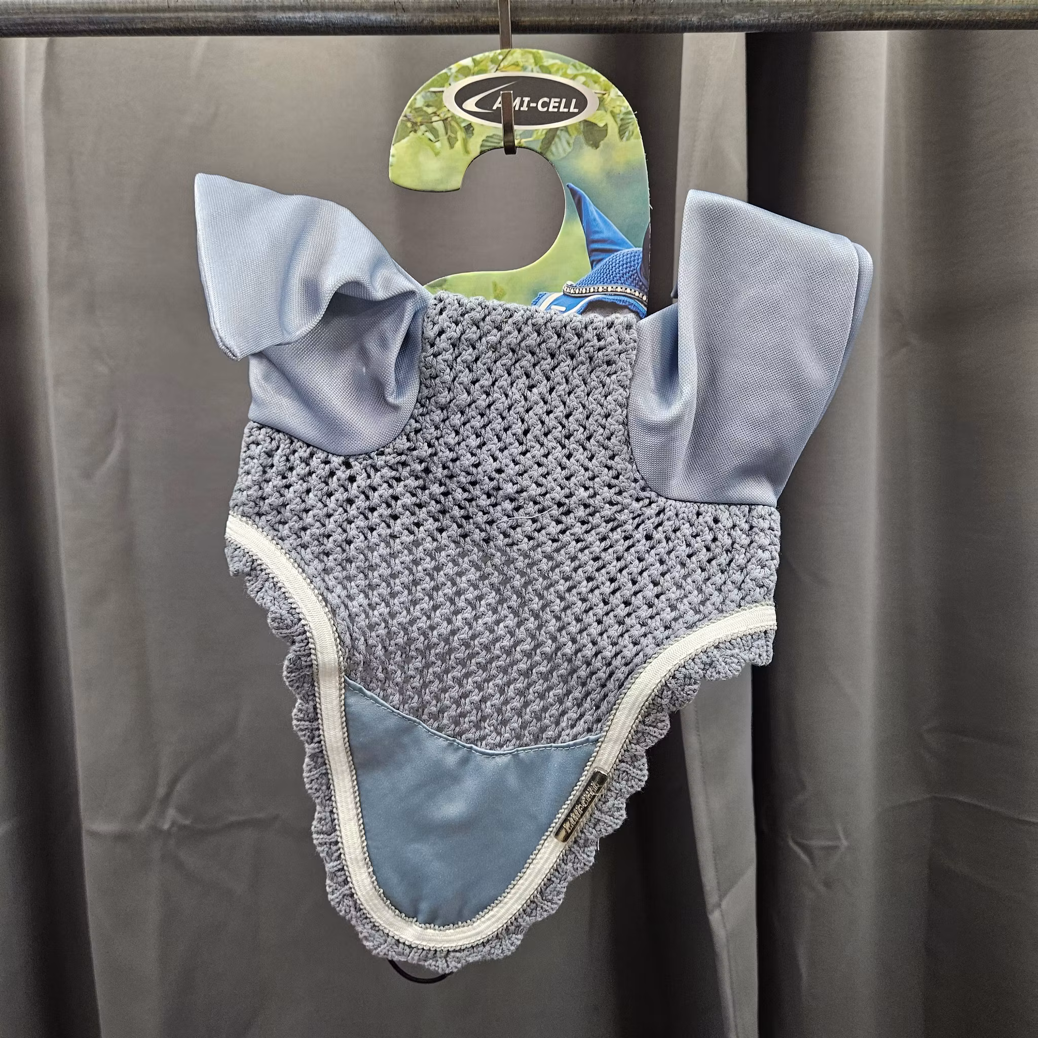 - Praktiskt gummiband på undersidan ger möjlighet att fästa huvan i pannluggen el. nosgrimman och på så sätt förhindra att huvan fladdrar.