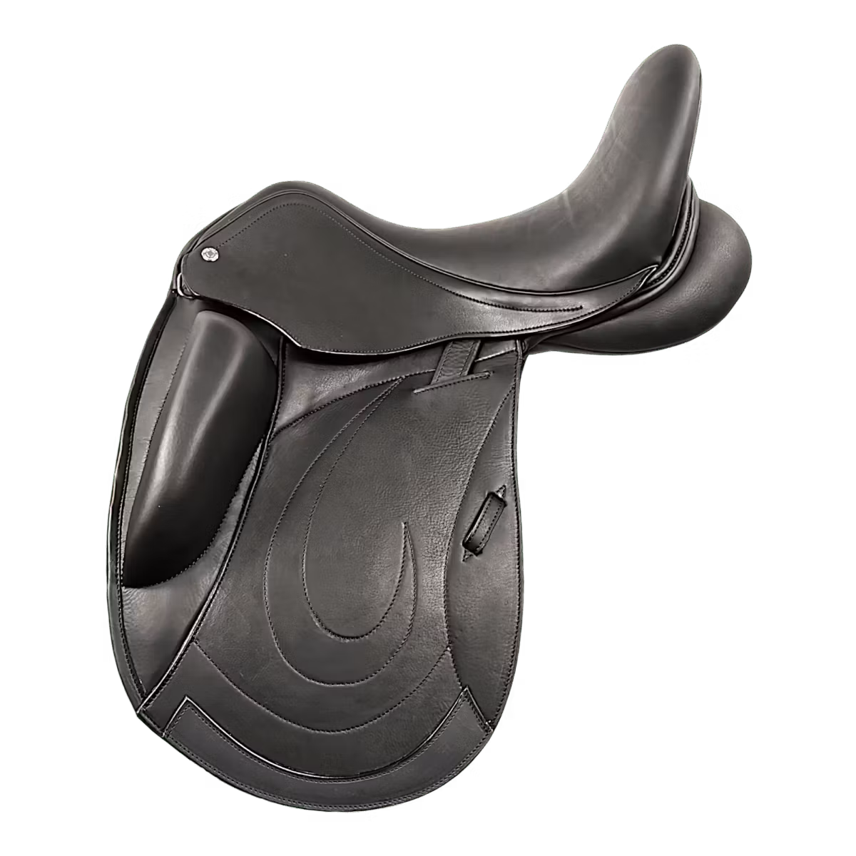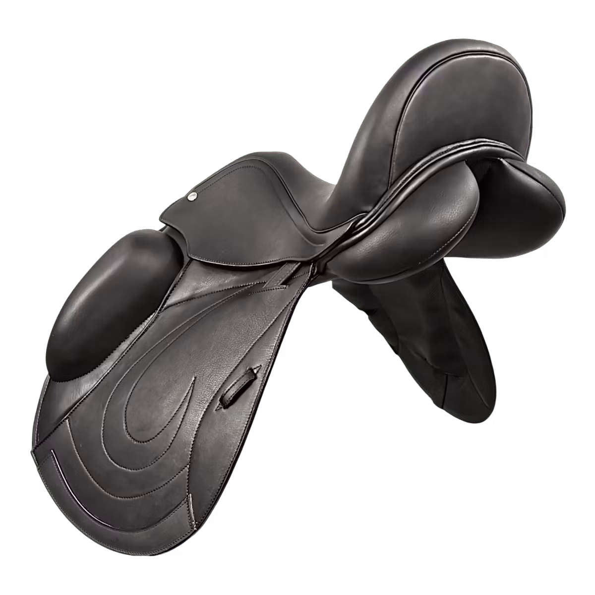 Exklusiv dressyrsadel klädd i mjukt kalvskinn – vidareutveckling av den populära modellen Catherine, men för dig som söker mer utrymme mellan höft och knä.