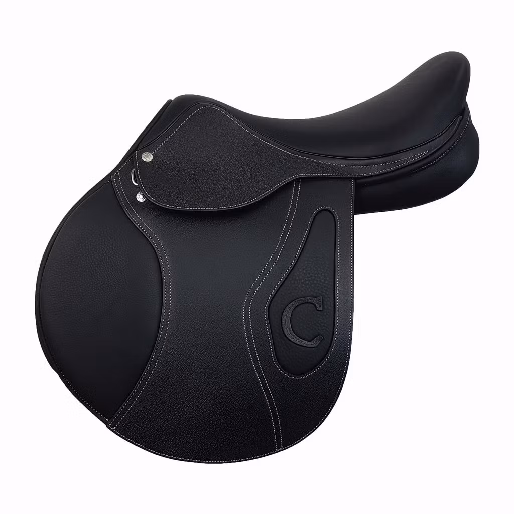 - Med en sittpunkt placerad långt fram får du en dynamisk position i sadeln, perfekt för hoppning där balans och följsamhet är avgörande.