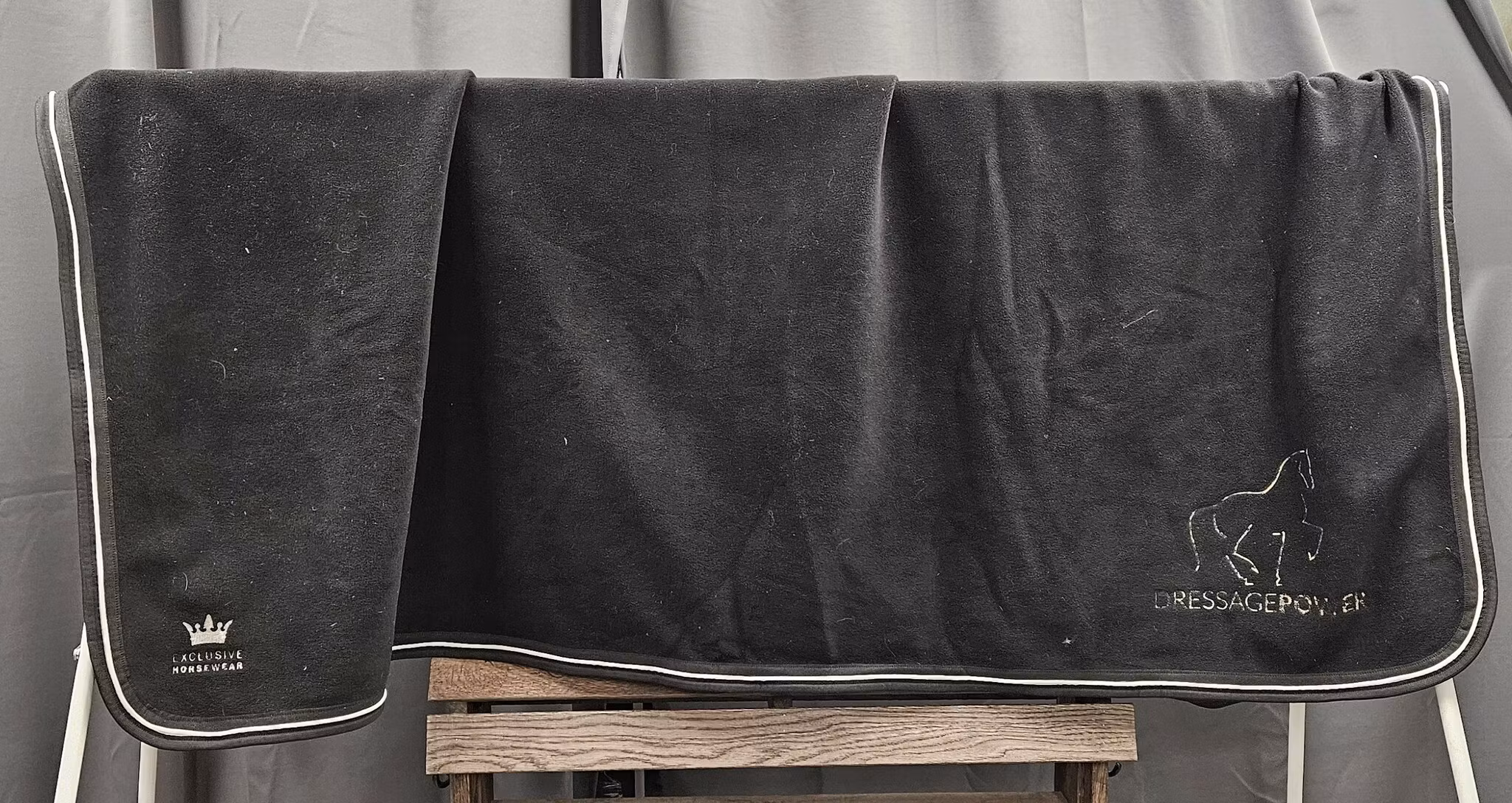 Ridfilt, Exclusive Horse Wear 99 kr I lager Lägg i korgen Dela Information Begagnad ridfilt från Exclusice Horse WearSvart fleeceVit passpoalBroderad med "Dressage Power" och "Sweden Trophy", men brodyren är delvis bortsprättad180 cm lång, 140 cm bredFint skick!