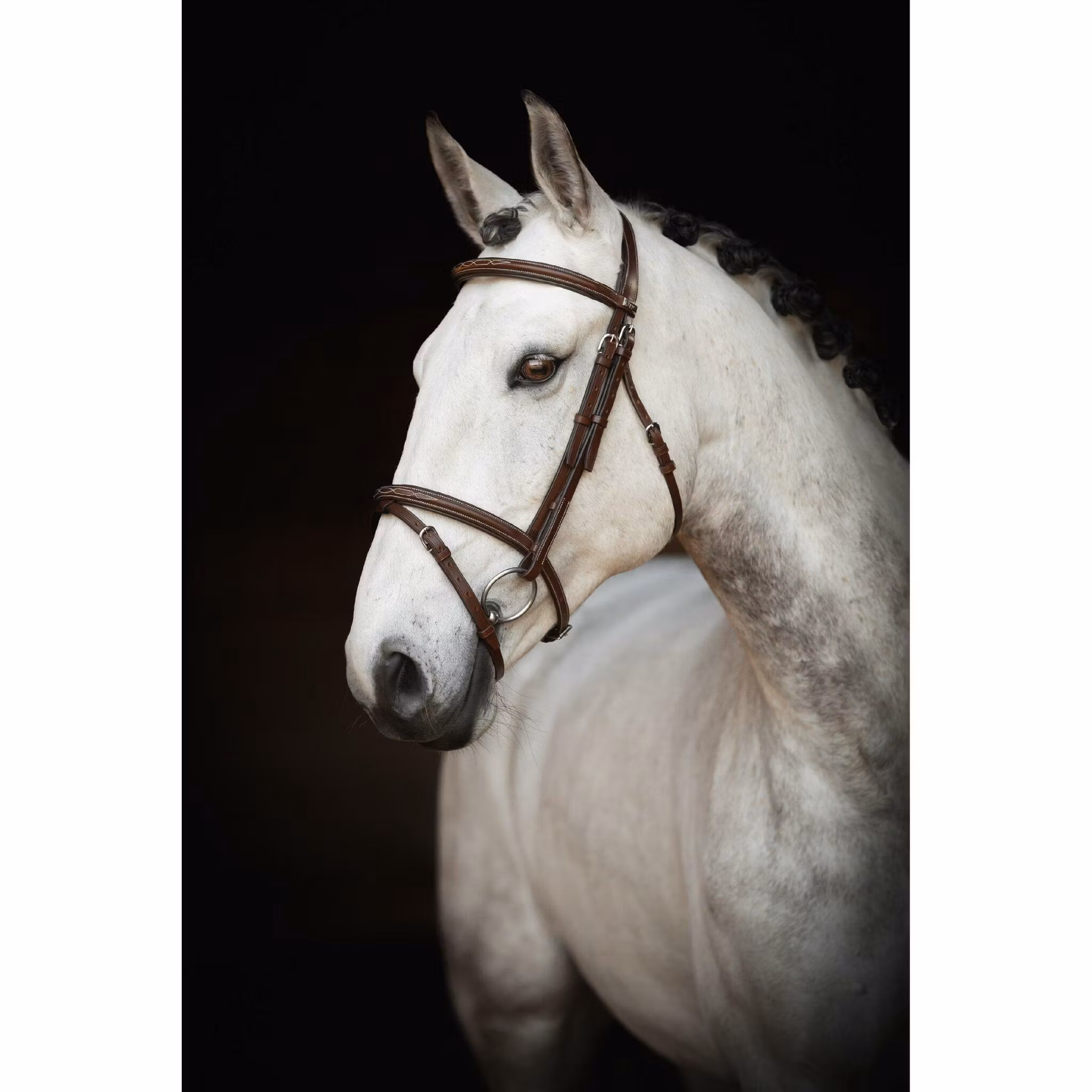- Dekorativa stickningar på rakt pannband och nosgrimma som är mjukt fodrade.