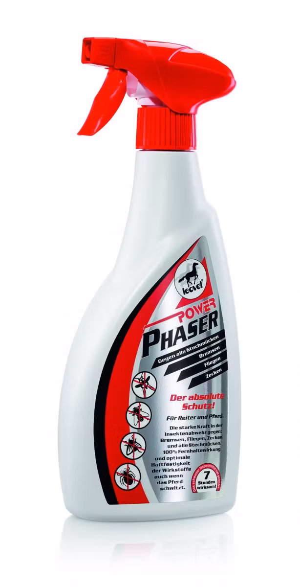 Power Phaser erbjuder ett kraftfullt och långvarigt skydd mot alla typer av insekter och hästflugor – utvecklat för att fungera även när hästen svettas.