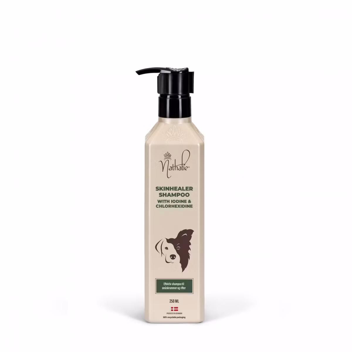 - Skinhealer schampo med mossa, tranbärsextrakt, jod och klorhexidin.