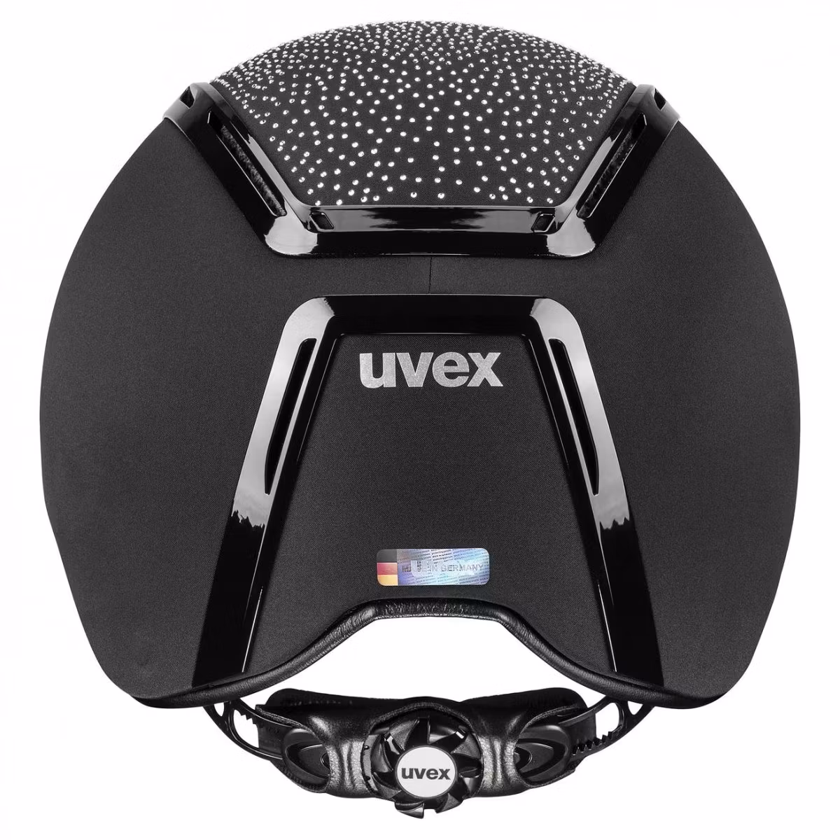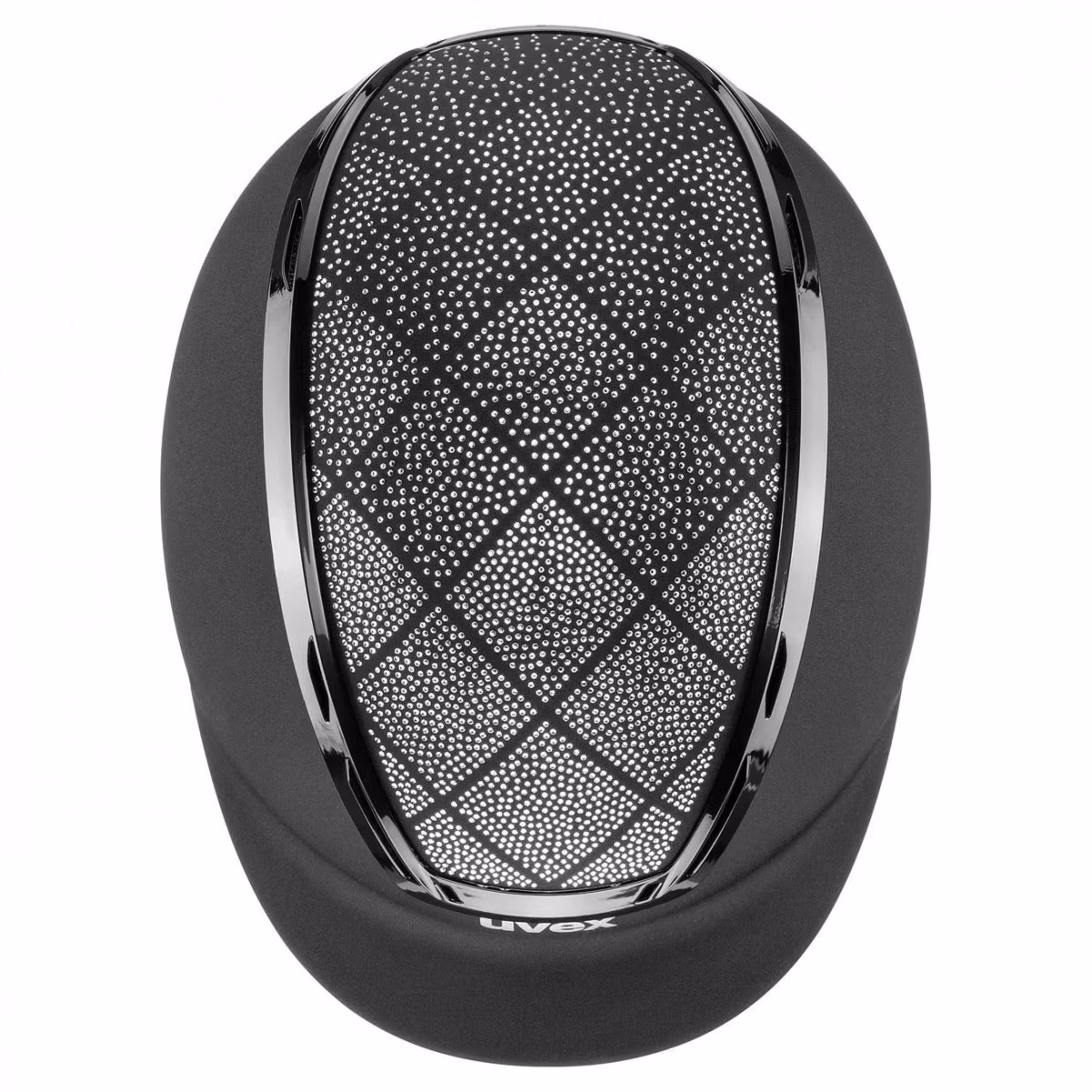 Uvex exxeed flash är prydd med mer än 3000 original Swarovski®-kristaller och har en högblank ram med pianolackskänsla – en hjälm som verkligen sticker ut.