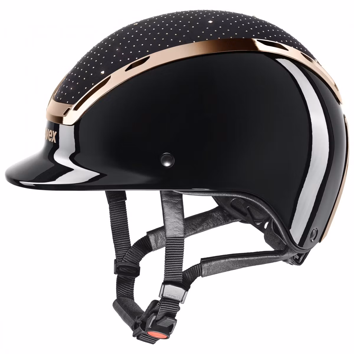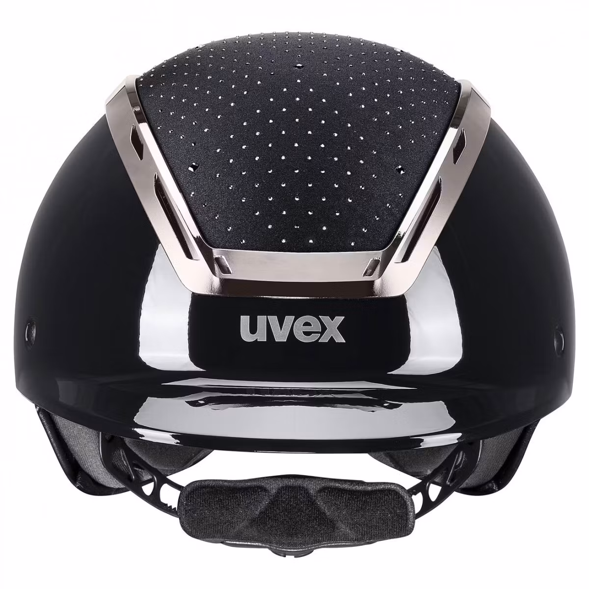 Uvex exxeed glow kombinerar högblank pianolack med en satinbeklädd topp, infälld med 450 Swarovski®-kristaller och en kromram som ger ett lysande uttryck.