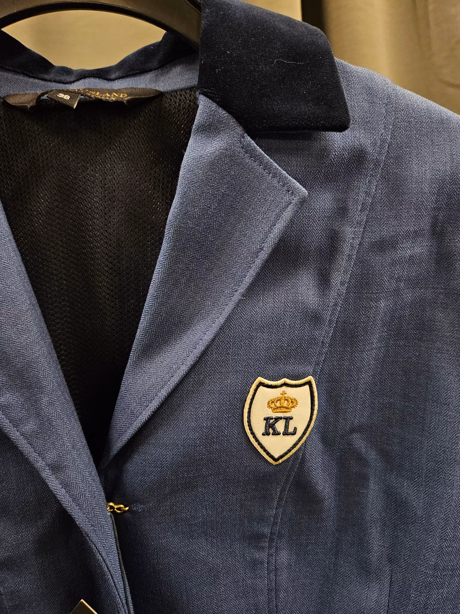 Kavajen har haft en liten blingsten vid kragen som fattas.